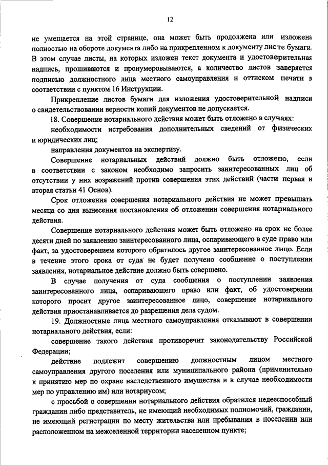 "ОБ УТВЕРЖДЕНИИ ИНСТРУКЦИИ О ПОРЯДКЕ СОВЕРШЕНИЯ НОТАРИАЛЬНЫХ