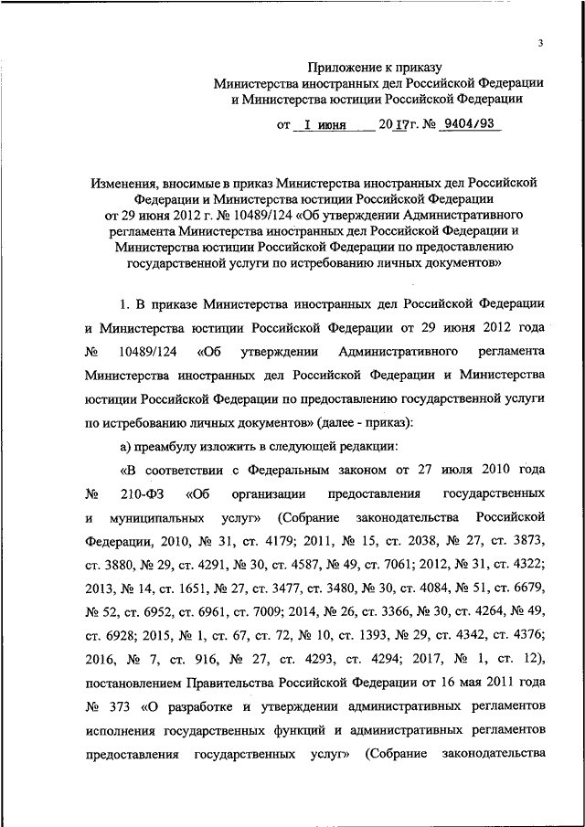 ПРИКАЗ МИД РФ N 9404, Минюста РФ N 93 от 01.06.2017