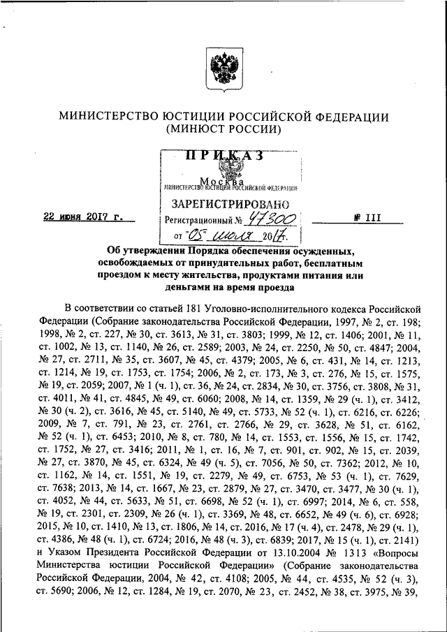 ПРИКАЗ Минюста РФ от 22.06.2017 N 111