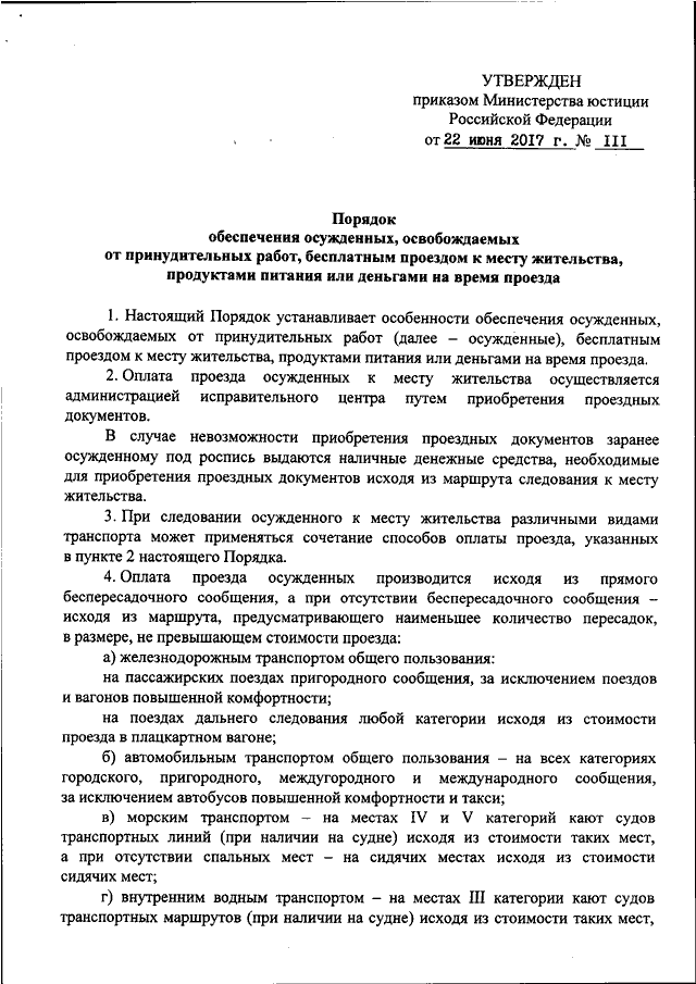ПРИКАЗ Минюста РФ от 22.06.2017 N 111