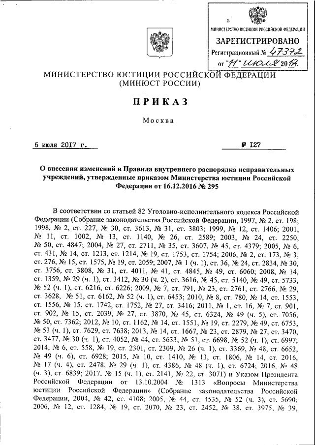 ПРИКАЗ Минюста РФ от 06.07.2017 N 127