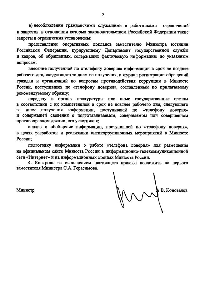 "ОБ ОРГАНИЗАЦИИ РАБОТЫ "ТЕЛЕФОНА ДОВЕРИЯ" ПО ВОПРОСАМ ПРОТИВОДЕЙСТВИЯ КОРРУПЦИИ В МИНЮСТЕ РОССИИ"