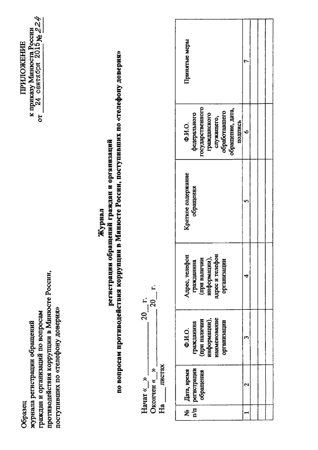 ПРИКАЗ Минюста РФ от 24.09.2015 N 224