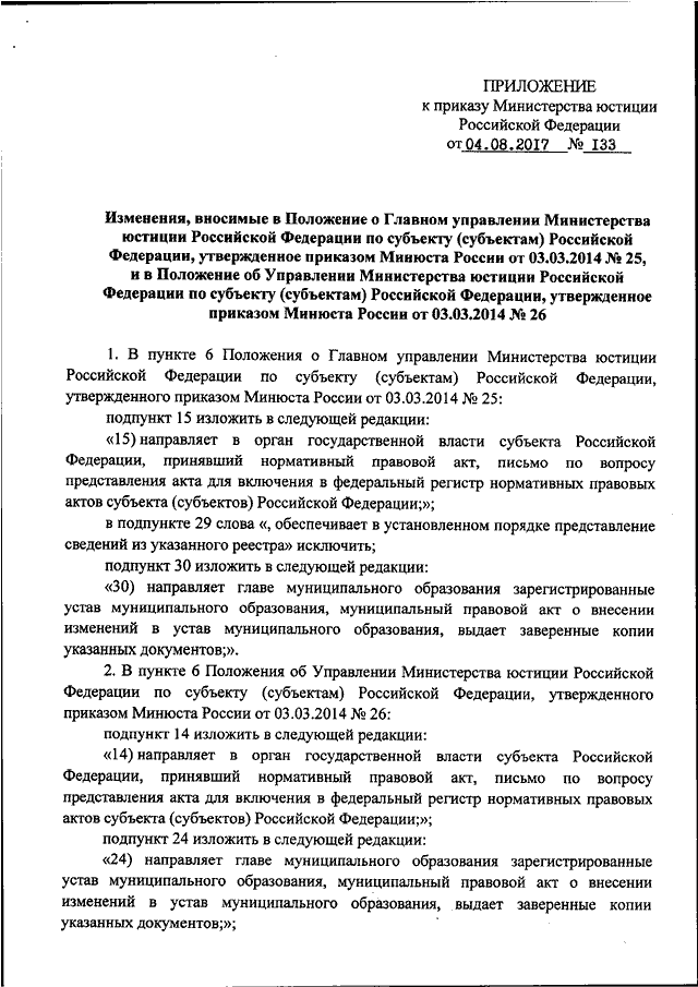 ПРИКАЗ Минюста РФ от 04.08.2017 N 133