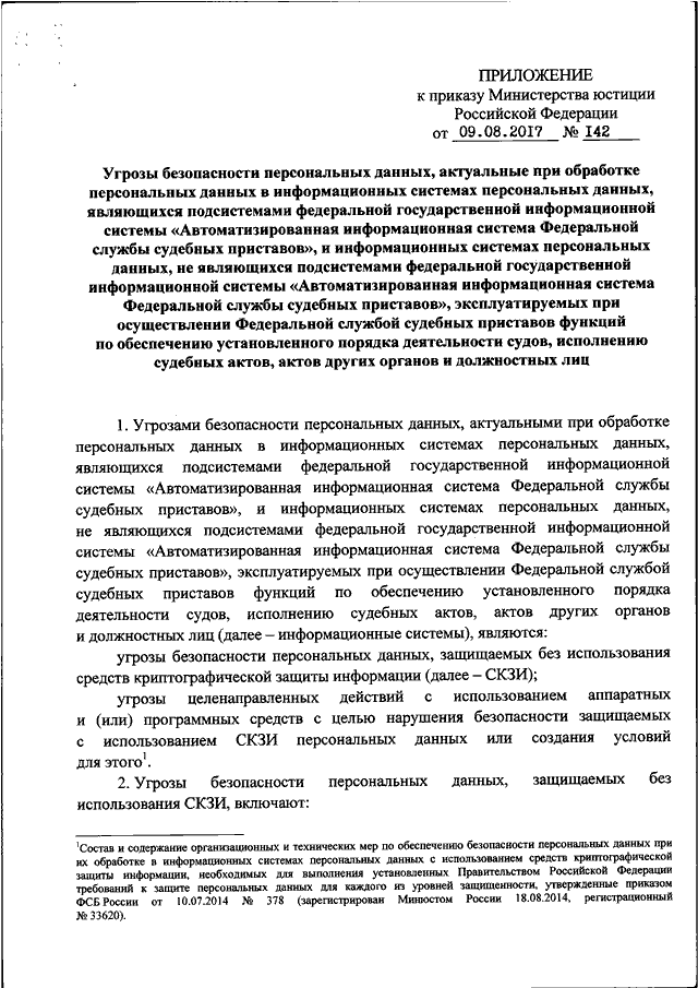 "ОБ ОПРЕДЕЛЕНИИ УГРОЗ БЕЗОПАСНОСТИ ПЕРСОНАЛЬНЫХ ДАННЫХ, АКТУАЛЬНЫХ ПРИ ОБРАБОТКЕ ПЕРСОНАЛЬНЫХ ДАННЫХ В ИНФОРМАЦИОННЫХ СИСТЕМАХ ПЕРСОНАЛЬНЫХ ДАННЫХ, ЯВЛЯЮЩИХСЯ ПОДСИСТЕМАМИ ФЕДЕРАЛЬНОЙ ГОСУДАРСТВЕННОЙ ИНФОРМАЦИОННОЙ СИСТЕМЫ "АВТОМАТИЗИРОВАННАЯ ИНФОРМАЦИОННАЯ СИСТЕМА ФЕДЕРАЛЬНОЙ СЛУЖБЫ СУДЕБНЫХ ПРИСТАВОВ", И ИНФОРМАЦИОННЫХ СИСТЕМАХ ПЕРСОНАЛЬНЫХ ДАННЫХ, НЕ ЯВЛЯЮЩИХСЯ ПОДСИСТЕМАМИ ФЕДЕРАЛЬНОЙ ГОСУДАРСТВЕННОЙ ИНФОРМАЦИОННОЙ СИСТЕМЫ "АВТОМАТИЗИРОВАННАЯ ИНФОРМАЦИОННАЯ СИСТЕМА ФЕДЕРАЛЬНОЙ СЛУЖБЫ СУДЕБНЫХ ПРИСТАВОВ", ЭКСПЛУАТИРУЕМЫХ ПРИ ОСУЩЕСТВЛЕНИИ ФЕДЕРАЛЬНОЙ СЛУЖБОЙ СУДЕБНЫХ ПРИСТАВОВ ФУНКЦИЙ ПО ОБЕСПЕЧЕНИЮ УСТАНОВЛЕННОГО ПОРЯДКА ДЕЯТЕЛЬНОСТИ СУДОВ, ИСПОЛНЕНИЮ СУДЕБНЫХ АКТОВ, АКТОВ ДРУГИХ ОРГАНОВ И ДОЛЖНОСТНЫХ ЛИЦ"