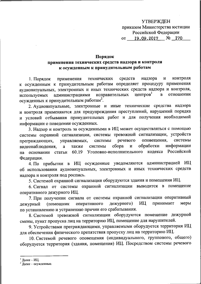 ПРИКАЗ Минюста РФ от 19.09.2017 N 170