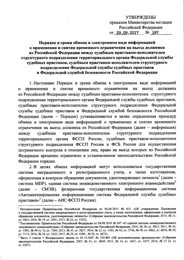 ПРИКАЗ Минюста РФ от 29.09.2017 N 187