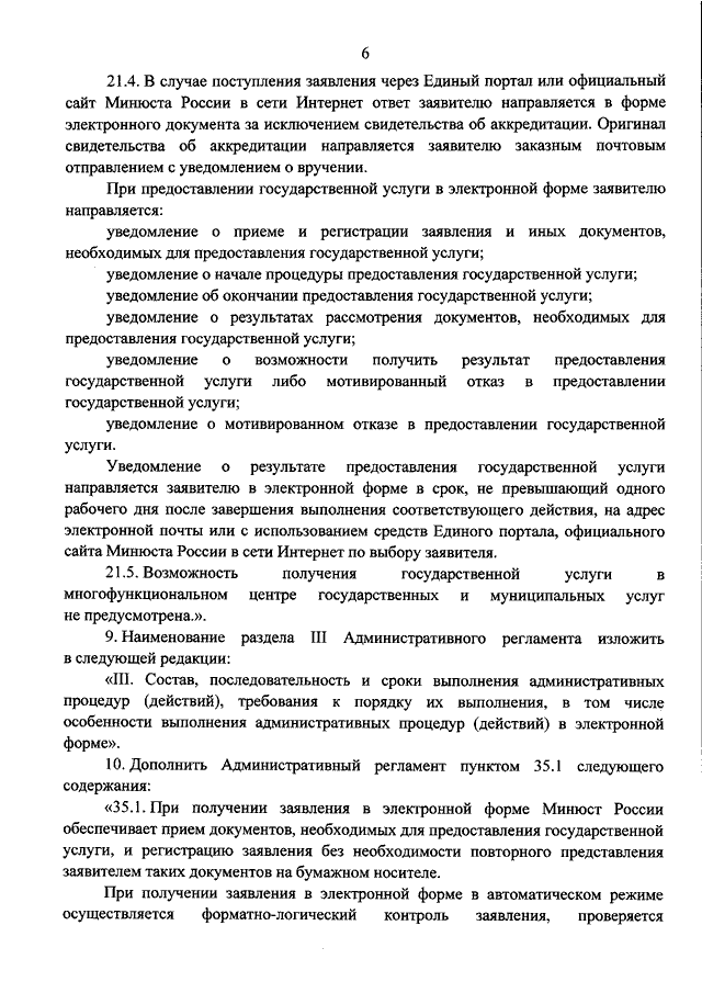 "О ВНЕСЕНИИ ИЗМЕНЕНИЙ В АДМИНИСТРАТИВНЫЙ РЕГЛАМЕНТ МИНИСТЕРСТВА ЮСТИЦИИ РОССИЙСКОЙ ФЕДЕРАЦИИ ПО ПРЕДОСТАВЛЕНИЮ ГОСУДАРСТВЕННОЙ УСЛУГИ ПО ОСУЩЕСТВЛЕНИЮ АККРЕДИТАЦИИ ЮРИДИЧЕСКИХ И ФИЗИЧЕСКИХ ЛИЦ, ИЗЪЯВИВШИХ ЖЕЛАНИЕ ПОЛУЧИТЬ АККРЕДИТАЦИЮ НА ПРОВЕДЕНИЕ В КАЧЕСТВЕ НЕЗАВИСИМЫХ ЭКСПЕРТОВ АНТИКОРРУПЦИОННОЙ ЭКСПЕРТИЗЫ НОРМАТИВНЫХ ПРАВОВЫХ АКТОВ И ПРОЕКТОВ НОРМАТИВНЫХ ПРАВОВЫХ АКТОВ В СЛУЧАЯХ, ПРЕДУСМОТРЕННЫХ ЗАКОНОДАТЕЛЬСТВОМ РОССИЙСКОЙ ФЕДЕРАЦИИ, УТВЕРЖДЕННЫЙ ПРИКАЗОМ МИНИСТЕРСТВА ЮСТИЦИИ РОССИЙСКОЙ ФЕДЕРАЦИИ ОТ 27.07.2012 N 146"