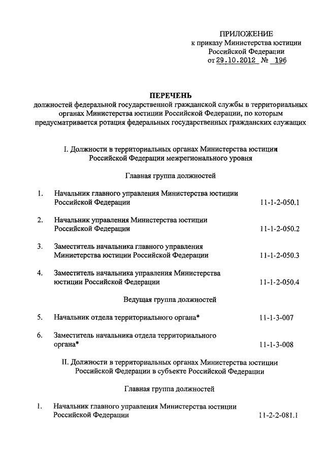 ПРИКАЗ Минюста РФ от 29.10.2012 N 196