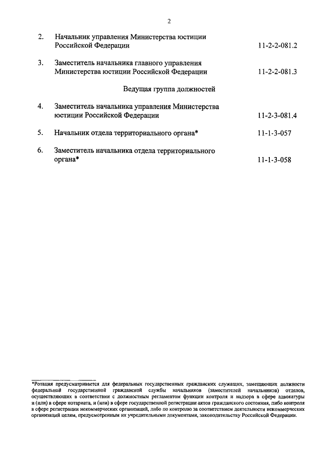 "ОБ УТВЕРЖДЕНИИ ПЕРЕЧНЯ ДОЛЖНОСТЕЙ ФЕДЕРАЛЬНОЙ ГОСУДАРСТВЕННОЙ ГРАЖДАНСКОЙ СЛУЖБЫ В ТЕРРИТОРИАЛЬНЫХ ОРГАНАХ МИНИСТЕРСТВА ЮСТИЦИИ РОССИЙСКОЙ ФЕДЕРАЦИИ, ПО КОТОРЫМ ПРЕДУСМАТРИВАЕТСЯ РОТАЦИЯ ФЕДЕРАЛЬНЫХ ГОСУДАРСТВЕННЫХ ГРАЖДАНСКИХ СЛУЖАЩИХ"