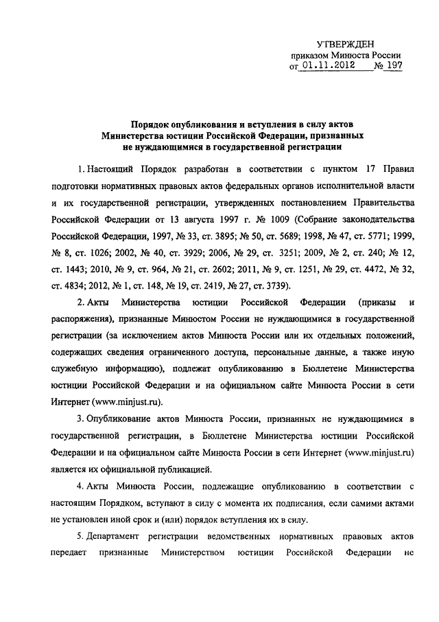 ПРИКАЗ Минюста РФ от 01.11.2012 N 197