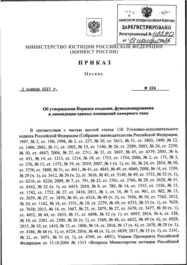 ПРИКАЗ Минюста РФ от 03.11.2017 N 224