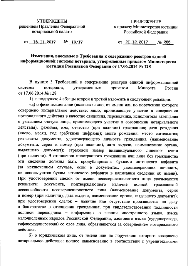 (вместе с "ИЗМЕНЕНИЯМИ...", утв. Решением Правления Федеральной нотариальной палаты от 15.11.2017 N 13/17, Приказом Минюста РФ от 21.12.2017 N 266) (Зарегистрировано в Минюсте РФ 26.12.2017 N 49456)