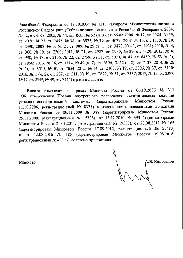 "О ВНЕСЕНИИ ИЗМЕНЕНИЙ В ПРИКАЗ МИНЮСТА РОССИИ ОТ 06.10.2006 N 311 "ОБ УТВЕРЖДЕНИИ ПРАВИЛ ВНУТРЕННЕГО РАСПОРЯДКА ВОСПИТАТЕЛЬНЫХ КОЛОНИЙ УГОЛОВНО - ИСПОЛНИТЕЛЬНОЙ СИСТЕМЫ"