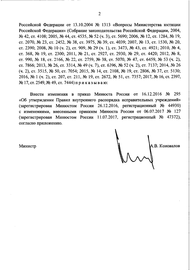 "О ВНЕСЕНИИ ИЗМЕНЕНИЙ В ПРИКАЗ МИНЮСТА РОССИИ ОТ 16.12.2016 N 295 "ОБ УТВЕРЖДЕНИИ ПРАВИЛ ВНУТРЕННЕГО РАСПОРЯДКА ИСПРАВИТЕЛЬНЫХ УЧРЕЖДЕНИЙ"