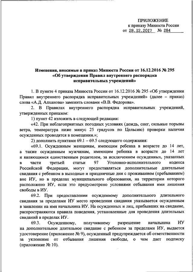 ПРИКАЗ Минюста РФ от 28.12.2017 N 284