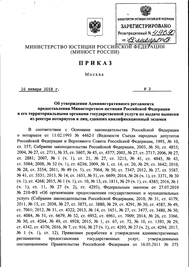 ПРИКАЗ Минюста РФ от 16.01.2018 N 3