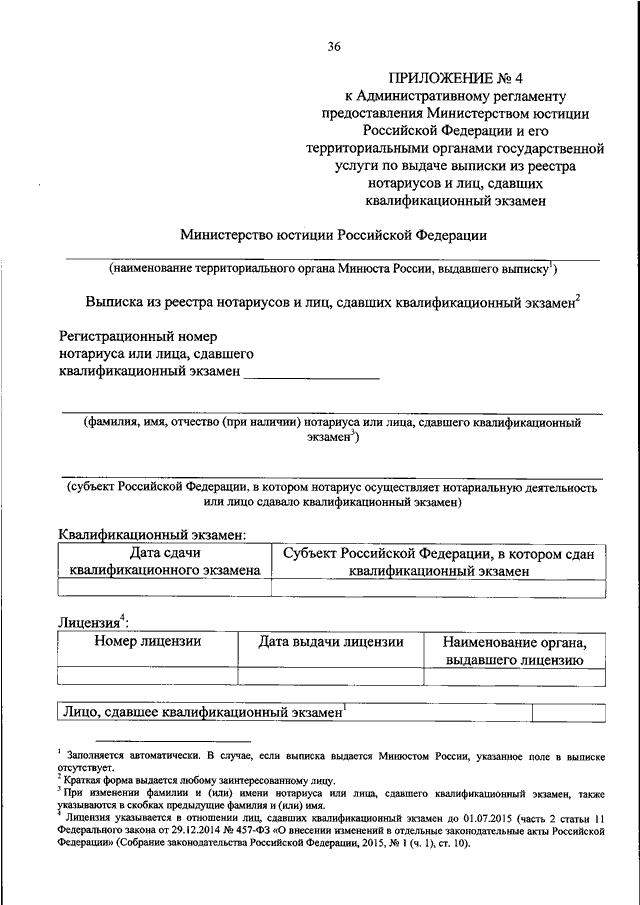 "ОБ УТВЕРЖДЕНИИ АДМИНИСТРАТИВНОГО РЕГЛАМЕНТА ПРЕДОСТАВЛЕНИЯ МИНИСТЕРСТВОМ ЮСТИЦИИ РОССИЙСКОЙ ФЕДЕРАЦИИ И ЕГО ТЕРРИТОРИАЛЬНЫМИ ОРГАНАМИ ГОСУДАРСТВЕННОЙ УСЛУГИ ПО ВЫДАЧЕ ВЫПИСКИ ИЗ РЕЕСТРА НОТАРИУСОВ И ЛИЦ, СДАВШИХ КВАЛИФИКАЦИОННЫЙ ЭКЗАМЕН"