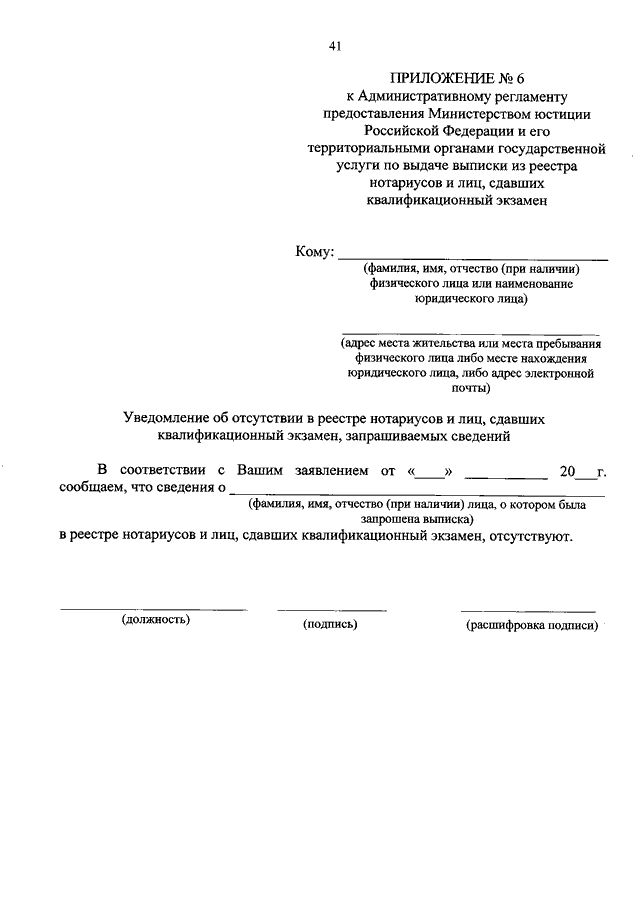 "ОБ УТВЕРЖДЕНИИ АДМИНИСТРАТИВНОГО РЕГЛАМЕНТА ПРЕДОСТАВЛЕНИЯ МИНИСТЕРСТВОМ ЮСТИЦИИ РОССИЙСКОЙ ФЕДЕРАЦИИ И ЕГО ТЕРРИТОРИАЛЬНЫМИ ОРГАНАМИ ГОСУДАРСТВЕННОЙ УСЛУГИ ПО ВЫДАЧЕ ВЫПИСКИ ИЗ РЕЕСТРА НОТАРИУСОВ И ЛИЦ, СДАВШИХ КВАЛИФИКАЦИОННЫЙ ЭКЗАМЕН"