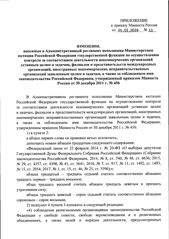 ПРИКАЗ Минюста РФ от 25.01.2018 N 13