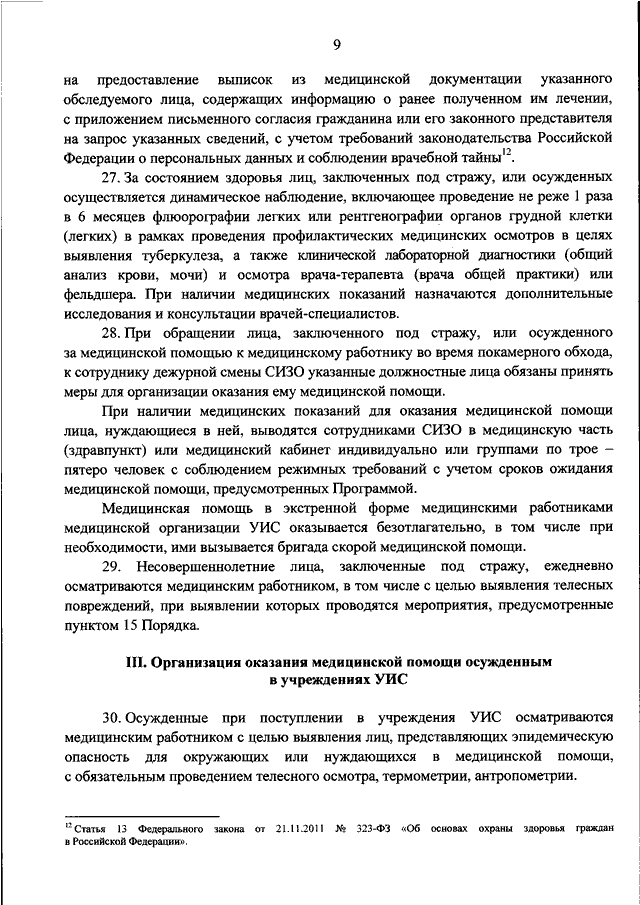 "ОБ УТВЕРЖДЕНИИ ПОРЯДКА ОРГАНИЗАЦИИ ОКАЗАНИЯ МЕДИЦИНСКОЙ ПОМОЩИ ЛИЦАМ, ЗАКЛЮЧЕННЫМ ПОД СТРАЖУ ИЛИ ОТБЫВАЮЩИМ НАКАЗАНИЕ В ВИДЕ ЛИШЕНИЯ СВОБОДЫ"