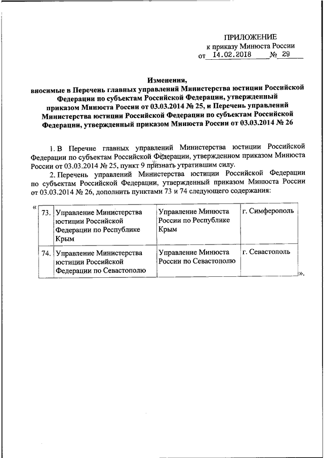 ПРИКАЗ Минюста РФ от 14.02.2018 N 29