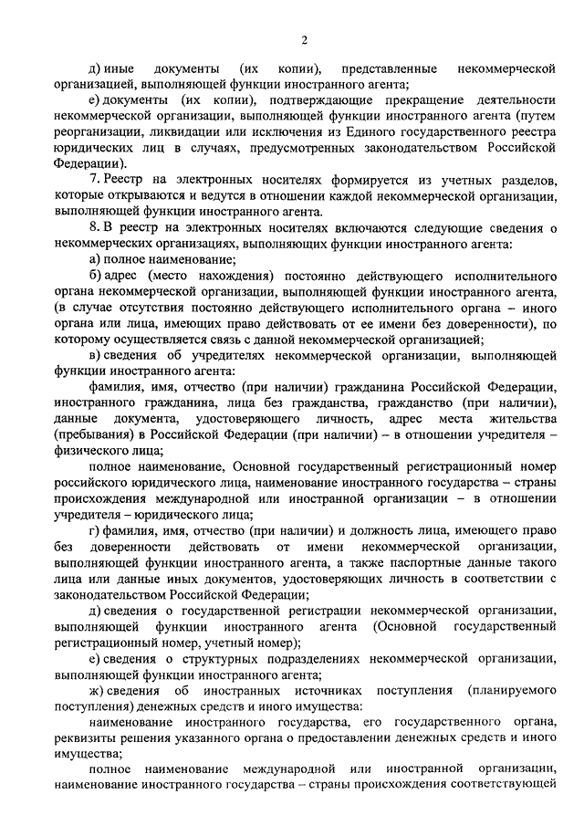 "О ПОРЯДКЕ ВЕДЕНИЯ РЕЕСТРА НЕКОММЕРЧЕСКИХ ОРГАНИЗАЦИЙ, ВЫПОЛНЯЮЩИХ ФУНКЦИИ ИНОСТРАННОГО АГЕНТА"