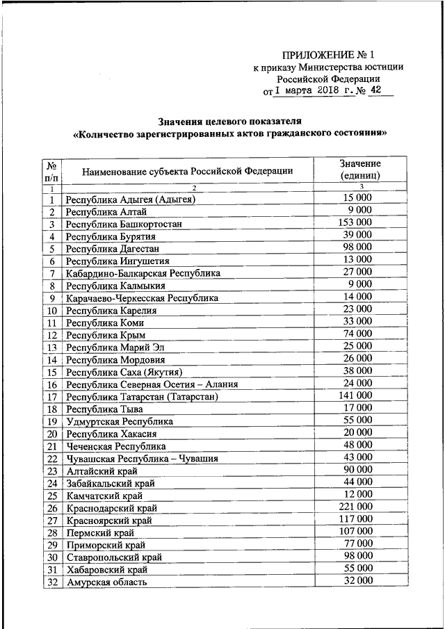 ПРИКАЗ Минюста РФ от 01.03.2018 N 42