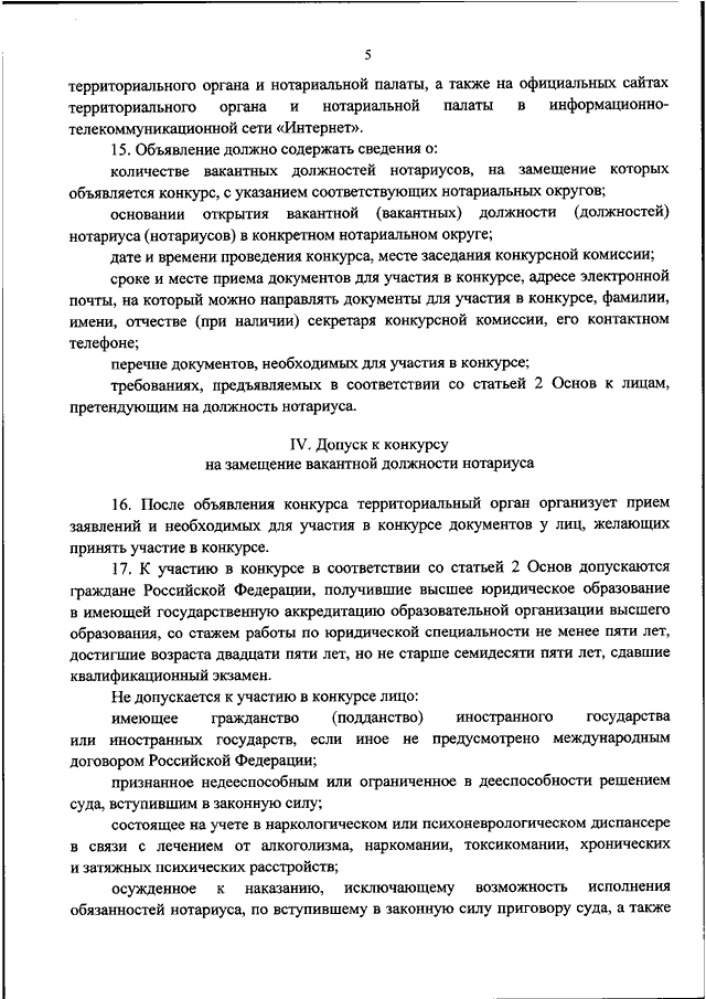"ОБ УТВЕРЖДЕНИИ ПОРЯДКА ПРОВЕДЕНИЯ КОНКУРСА НА ЗАМЕЩЕНИЕ ВАКАНТНОЙ ДОЛЖНОСТИ НОТАРИУСА"