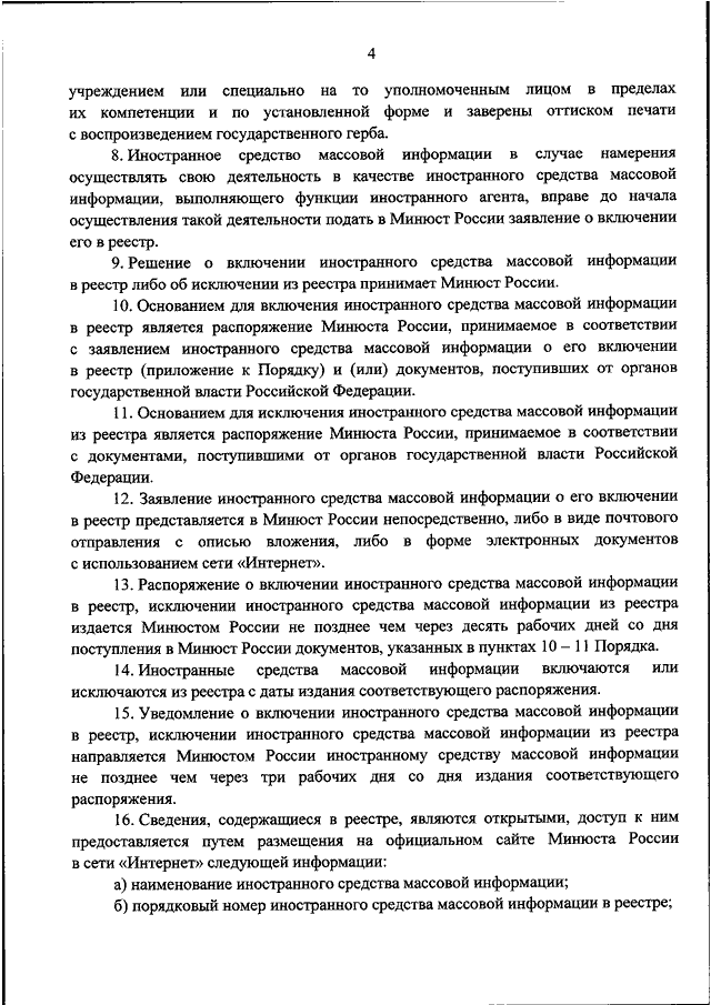 "ОБ УТВЕРЖДЕНИИ ПОРЯДКА ПРИМЕНЕНИЯ В ОТНОШЕНИИ ИНОСТРАННЫХ СРЕДСТВ МАССОВОЙ ИНФОРМАЦИИ, ВЫПОЛНЯЮЩИХ ФУНКЦИИ ИНОСТРАННОГО АГЕНТА, ПОЛОЖЕНИЙ ФЕДЕРАЛЬНОГО ЗАКОНА ОТ 12 ЯНВАРЯ 1996 Г. N 7-ФЗ "О НЕКОММЕРЧЕСКИХ ОРГАНИЗАЦИЯХ", РЕГУЛИРУЮЩИХ ПРАВОВОЙ СТАТУС НЕКОММЕРЧЕСКОЙ ОРГАНИЗАЦИИ, ВЫПОЛНЯЮЩЕЙ ФУНКЦИИ ИНОСТРАННОГО АГЕНТА"
