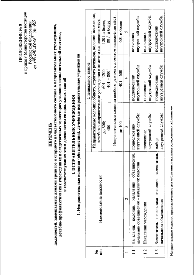 "ОБ УТВЕРЖДЕНИИ ПЕРЕЧНЕЙ ДОЛЖНОСТЕЙ, ЗАМЕЩАЕМЫХ ЛИЦАМИ РЯДОВОГО СОСТАВА, МЛАДШЕГО, СРЕДНЕГО И СТАРШЕГО НАЧАЛЬСТВУЮЩЕГО СОСТАВА В УГОЛОВНО - ИСПОЛНИТЕЛЬНОЙ СИСТЕМЕ, И СООТВЕТСТВУЮЩИХ ЭТИМ ДОЛЖНОСТЯМ СПЕЦИАЛЬНЫХ ЗВАНИЙ"