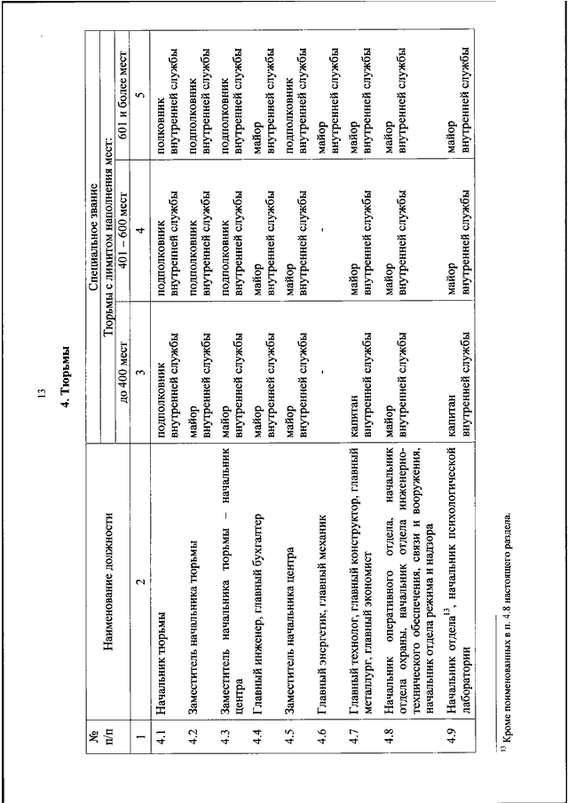 "ОБ УТВЕРЖДЕНИИ ПЕРЕЧНЕЙ ДОЛЖНОСТЕЙ, ЗАМЕЩАЕМЫХ ЛИЦАМИ РЯДОВОГО СОСТАВА, МЛАДШЕГО, СРЕДНЕГО И СТАРШЕГО НАЧАЛЬСТВУЮЩЕГО СОСТАВА В УГОЛОВНО - ИСПОЛНИТЕЛЬНОЙ СИСТЕМЕ, И СООТВЕТСТВУЮЩИХ ЭТИМ ДОЛЖНОСТЯМ СПЕЦИАЛЬНЫХ ЗВАНИЙ"