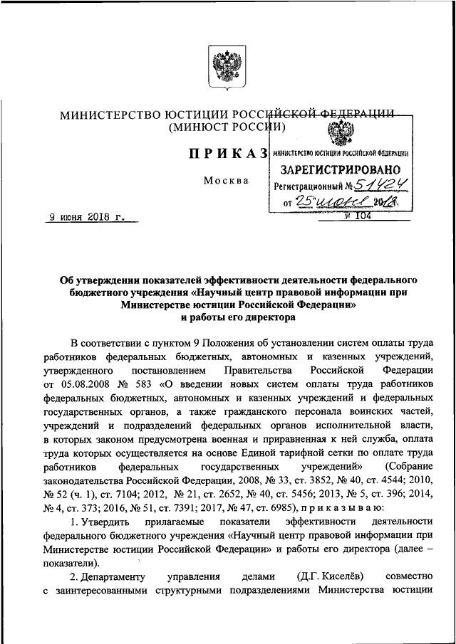 ПРИКАЗ Минюста РФ от 09.06.2018 N 104