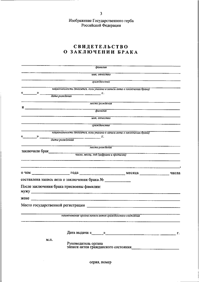 "ОБ УТВЕРЖДЕНИИ ФОРМ БЛАНКОВ ЗАПИСЕЙ АКТОВ ГРАЖДАНСКОГО СОСТОЯНИЯ И ФОРМ БЛАНКОВ СВИДЕТЕЛЬСТВ О ГОСУДАРСТВЕННОЙ РЕГИСТРАЦИИ АКТОВ ГРАЖДАНСКОГО СОСТОЯНИЯ"