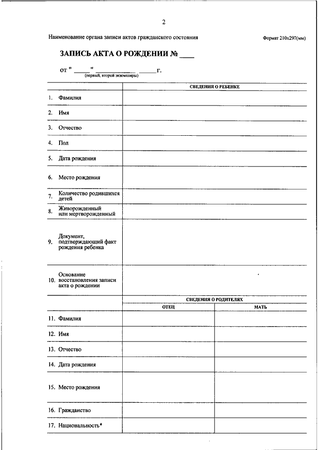 "ОБ УТВЕРЖДЕНИИ ФОРМ БЛАНКОВ ЗАПИСЕЙ АКТОВ ГРАЖДАНСКОГО СОСТОЯНИЯ И ФОРМ БЛАНКОВ СВИДЕТЕЛЬСТВ О ГОСУДАРСТВЕННОЙ РЕГИСТРАЦИИ АКТОВ ГРАЖДАНСКОГО СОСТОЯНИЯ"