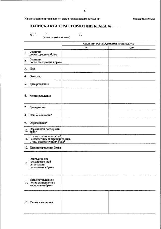 "ОБ УТВЕРЖДЕНИИ ФОРМ БЛАНКОВ ЗАПИСЕЙ АКТОВ ГРАЖДАНСКОГО СОСТОЯНИЯ И ФОРМ БЛАНКОВ СВИДЕТЕЛЬСТВ О ГОСУДАРСТВЕННОЙ РЕГИСТРАЦИИ АКТОВ ГРАЖДАНСКОГО СОСТОЯНИЯ"