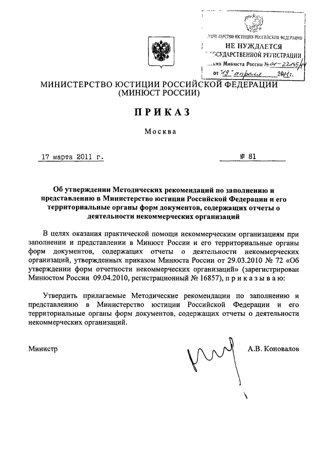 ПРИКАЗ Минюста РФ от 17.03.2011 N 81