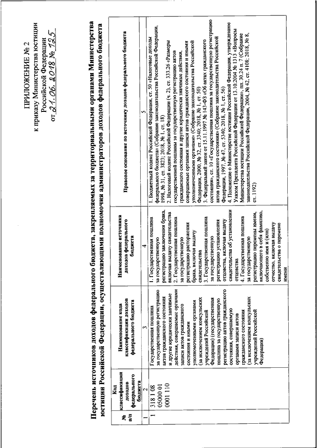 ПРИКАЗ Минюста РФ от 21.06.2018 N 125