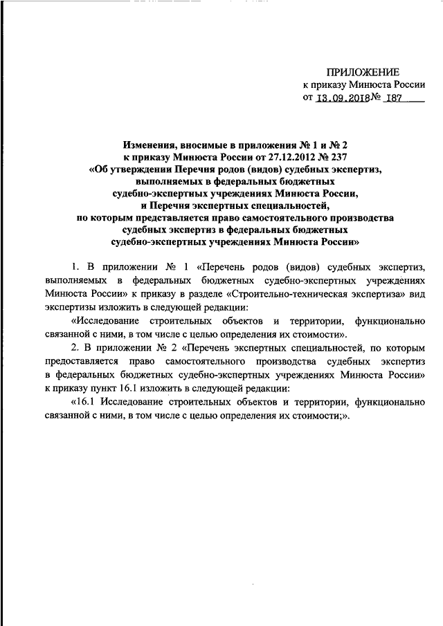 ПРИКАЗ Минюста РФ от 13.09.2018 N 187