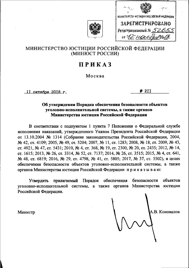 ПРИКАЗ Минюста РФ от 11.10.2018 N 211