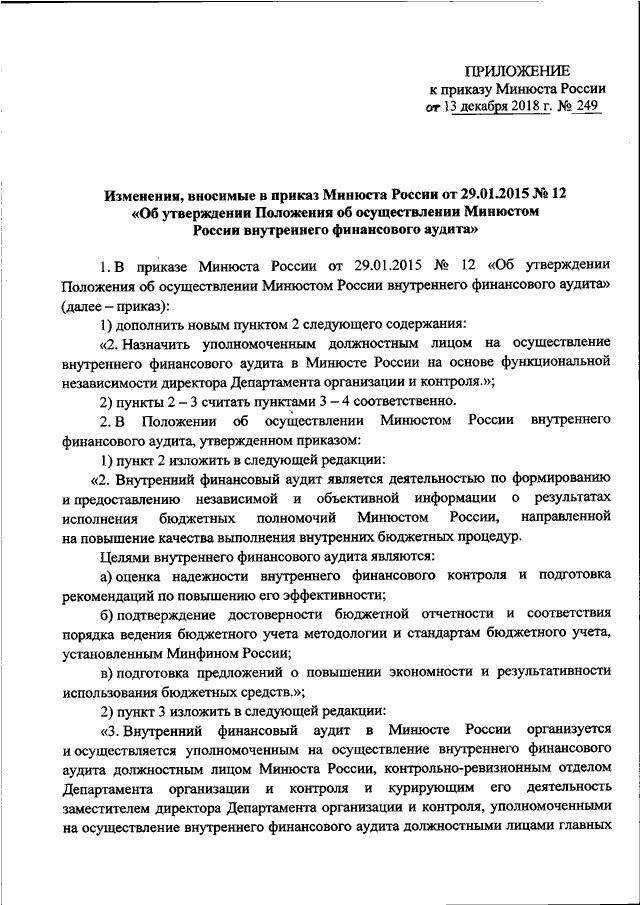 ПРИКАЗ Минюста РФ от 13.12.2018 N 249