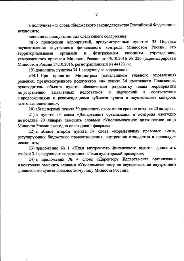 "О ВНЕСЕНИИ ИЗМЕНЕНИЙ В ПРИКАЗ МИНЮСТА РОССИИ ОТ 29.01.2015 N 12 "ОБ УТВЕРЖДЕНИИ ПОЛОЖЕНИЯ ОБ ОСУЩЕСТВЛЕНИИ МИНЮСТОМ РОССИИ ВНУТРЕННЕГО ФИНАНСОВОГО АУДИТА"