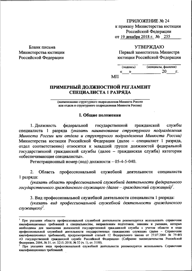 ПРИКАЗ Минюста РФ от 19.12.2018 N 255