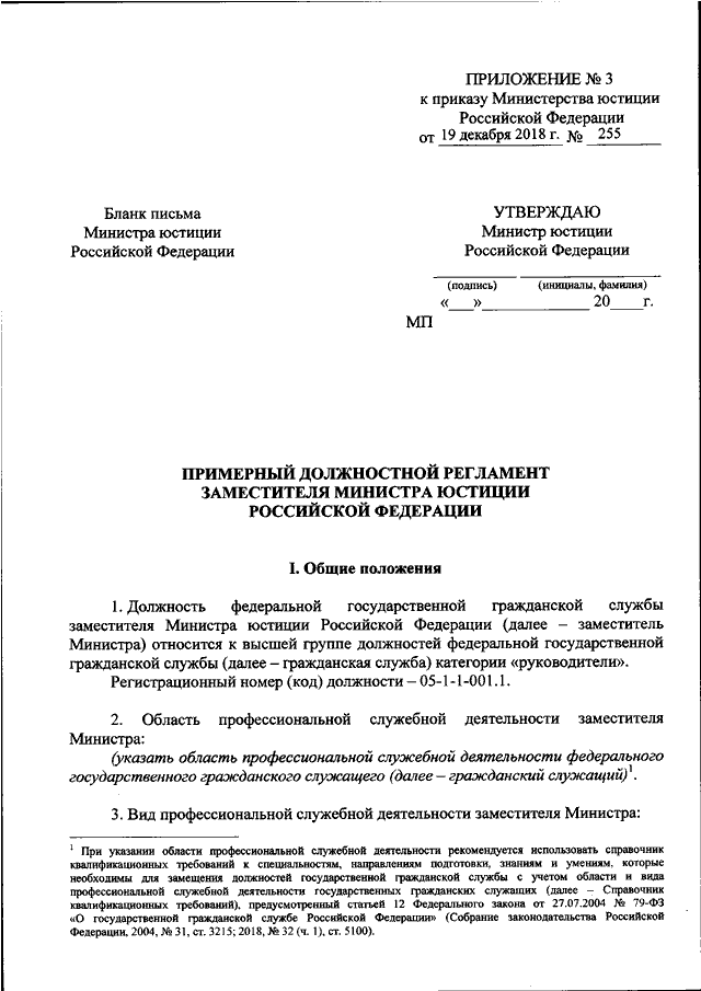 ПРИКАЗ Минюста РФ от 19.12.2018 N 255