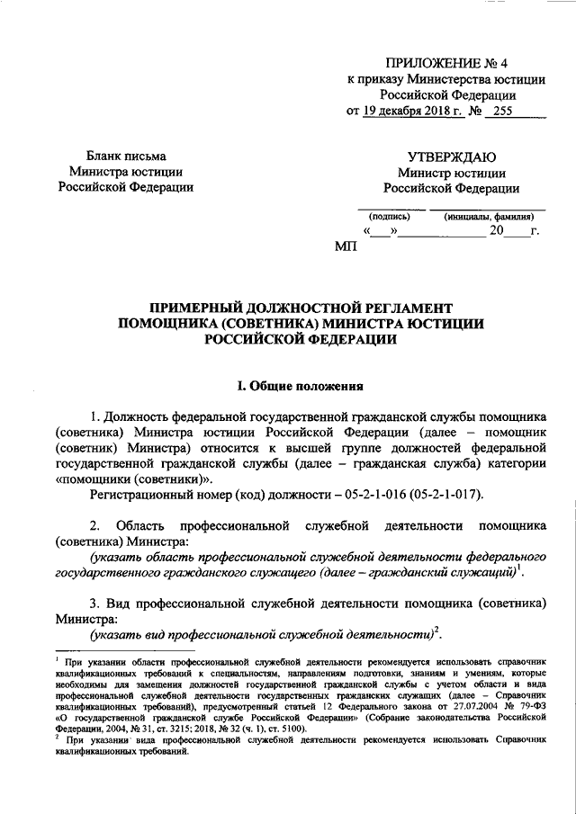 ПРИКАЗ Минюста РФ от 19.12.2018 N 255