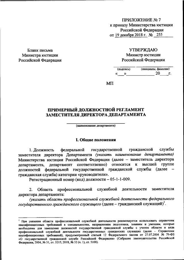 "О ПРИМЕРНЫХ ДОЛЖНОСТНЫХ РЕГЛАМЕНТАХ ФЕДЕРАЛЬНЫХ ГОСУДАРСТВЕННЫХ ГРАЖДАНСКИХ СЛУЖАЩИХ ЦЕНТРАЛЬНОГО АППАРАТА И ЗАРУБЕЖНОГО АППАРАТА МИНЮСТА РОССИИ"