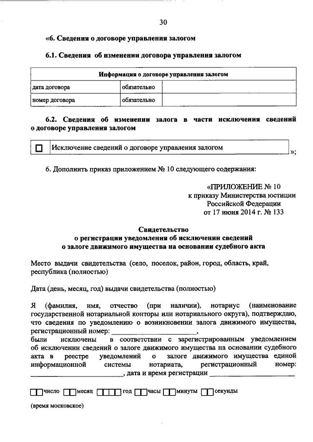 "О ВНЕСЕНИИ ИЗМЕНЕНИЙ В ПРИКАЗ МИНИСТЕРСТВА ЮСТИЦИИ РОССИЙСКОЙ ФЕДЕРАЦИИ ОТ 17.06.2014 N 133 "ОБ УТВЕРЖДЕНИИ ФОРМ СВИДЕТЕЛЬСТВ О РЕГИСТРАЦИИ УВЕДОМЛЕНИЯ О ЗАЛОГЕ ДВИЖИМОГО ИМУЩЕСТВА"