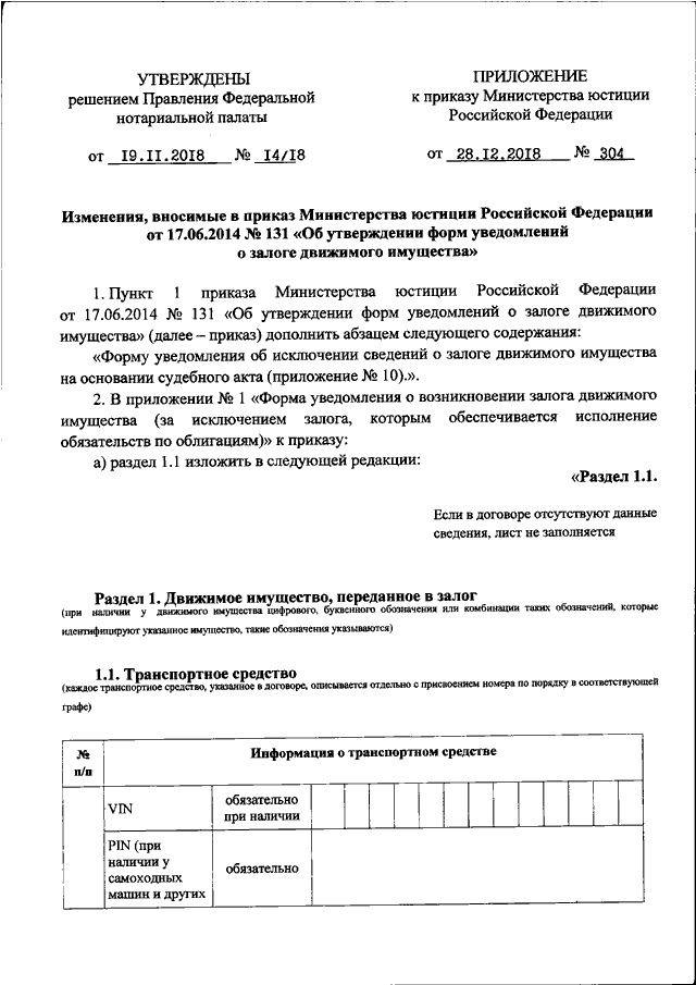 "О ВНЕСЕНИИ ИЗМЕНЕНИЙ В ПРИКАЗ МИНИСТЕРСТВА ЮСТИЦИИ РОССИЙСКОЙ ФЕДЕРАЦИИ ОТ 17.06.2014 N 131 "ОБ УТВЕРЖДЕНИИ ФОРМ УВЕДОМЛЕНИЙ О ЗАЛОГЕ ДВИЖИМОГО ИМУЩЕСТВА"