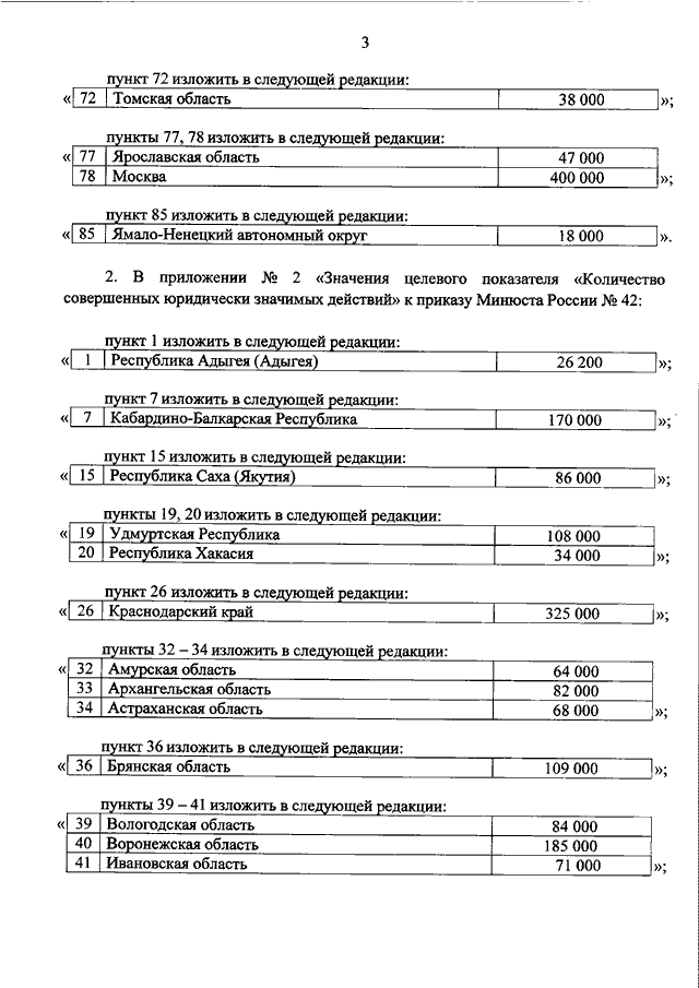 "О ВНЕСЕНИИ ИЗМЕНЕНИЙ В ЗНАЧЕНИЯ ЦЕЛЕВЫХ ПОКАЗАТЕЛЕЙ ЭФФЕКТИВНОСТИ ДЕЯТЕЛЬНОСТИ ОРГАНОВ ГОСУДАРСТВЕННОЙ ВЛАСТИ СУБЪЕКТОВ РОССИЙСКОЙ ФЕДЕРАЦИИ И АДМИНИСТРАЦИИ Г. БАЙКОНУРА ПО ОСУЩЕСТВЛЕНИЮ ПЕРЕДАННЫХ ИМ ПОЛНОМОЧИЙ РОССИЙСКОЙ ФЕДЕРАЦИИ НА ГОСУДАРСТВЕННУЮ РЕГИСТРАЦИЮ АКТОВ ГРАЖДАНСКОГО СОСТОЯНИЯ НА 2018 ГОД, УТВЕРЖДЕННЫЕ ПРИКАЗОМ МИНИСТЕРСТВА ЮСТИЦИИ РОССИЙСКОЙ ФЕДЕРАЦИИ ОТ 01.03.2018 N 42"