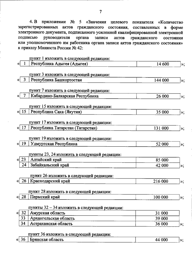 "О ВНЕСЕНИИ ИЗМЕНЕНИЙ В ЗНАЧЕНИЯ ЦЕЛЕВЫХ ПОКАЗАТЕЛЕЙ ЭФФЕКТИВНОСТИ ДЕЯТЕЛЬНОСТИ ОРГАНОВ ГОСУДАРСТВЕННОЙ ВЛАСТИ СУБЪЕКТОВ РОССИЙСКОЙ ФЕДЕРАЦИИ И АДМИНИСТРАЦИИ Г. БАЙКОНУРА ПО ОСУЩЕСТВЛЕНИЮ ПЕРЕДАННЫХ ИМ ПОЛНОМОЧИЙ РОССИЙСКОЙ ФЕДЕРАЦИИ НА ГОСУДАРСТВЕННУЮ РЕГИСТРАЦИЮ АКТОВ ГРАЖДАНСКОГО СОСТОЯНИЯ НА 2018 ГОД, УТВЕРЖДЕННЫЕ ПРИКАЗОМ МИНИСТЕРСТВА ЮСТИЦИИ РОССИЙСКОЙ ФЕДЕРАЦИИ ОТ 01.03.2018 N 42"